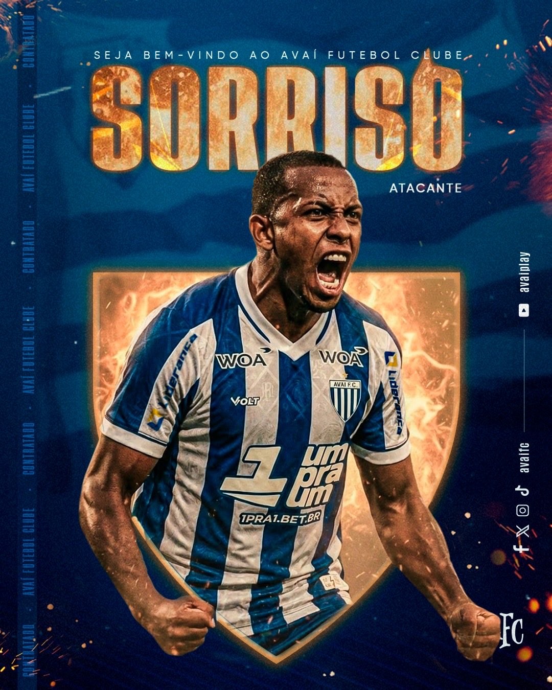O Avaí anunciou a contratação do atacante Sorriso, de 21 anos, para a disputa da Copa do Brasil. O jogador chega por empréstimo do Palmeiras até o final da temporada.